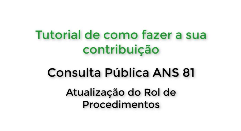Neste momento esta? aberta a Consulta Publicar N. 81 da ANS (Age?ncia Nacional de Sau?de Suplementar) responsa?vel pelo setor dos Planos de Sau?de. De 08/10 a? 21/11 voce? podera? participar […]
