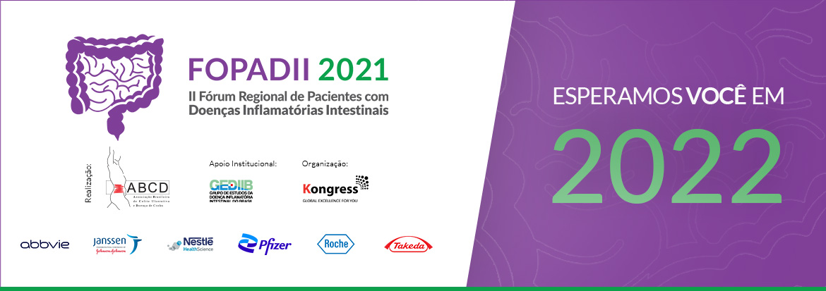 Venho aqui agradecer a todos aqueles que nos ajudaram a fazer desse FOPADII virtual um sucesso: os patrocinadores, que são grandes parceiros nesta jornada, os colegas das várias especialidades, como enfermeiros, médicos, nutricionistas, psicólogos, psiquiatras, serviço social e, claro, o nosso foco principal, que são as pessoas portadoras de DII desse imenso Brasil, para quem dedicamos esse evento e todo o nosso trabalho. Muito obrigada também ao GEDIIB pela parceria e pelo apoio, tão fundamentais para um trabalho de excelência.