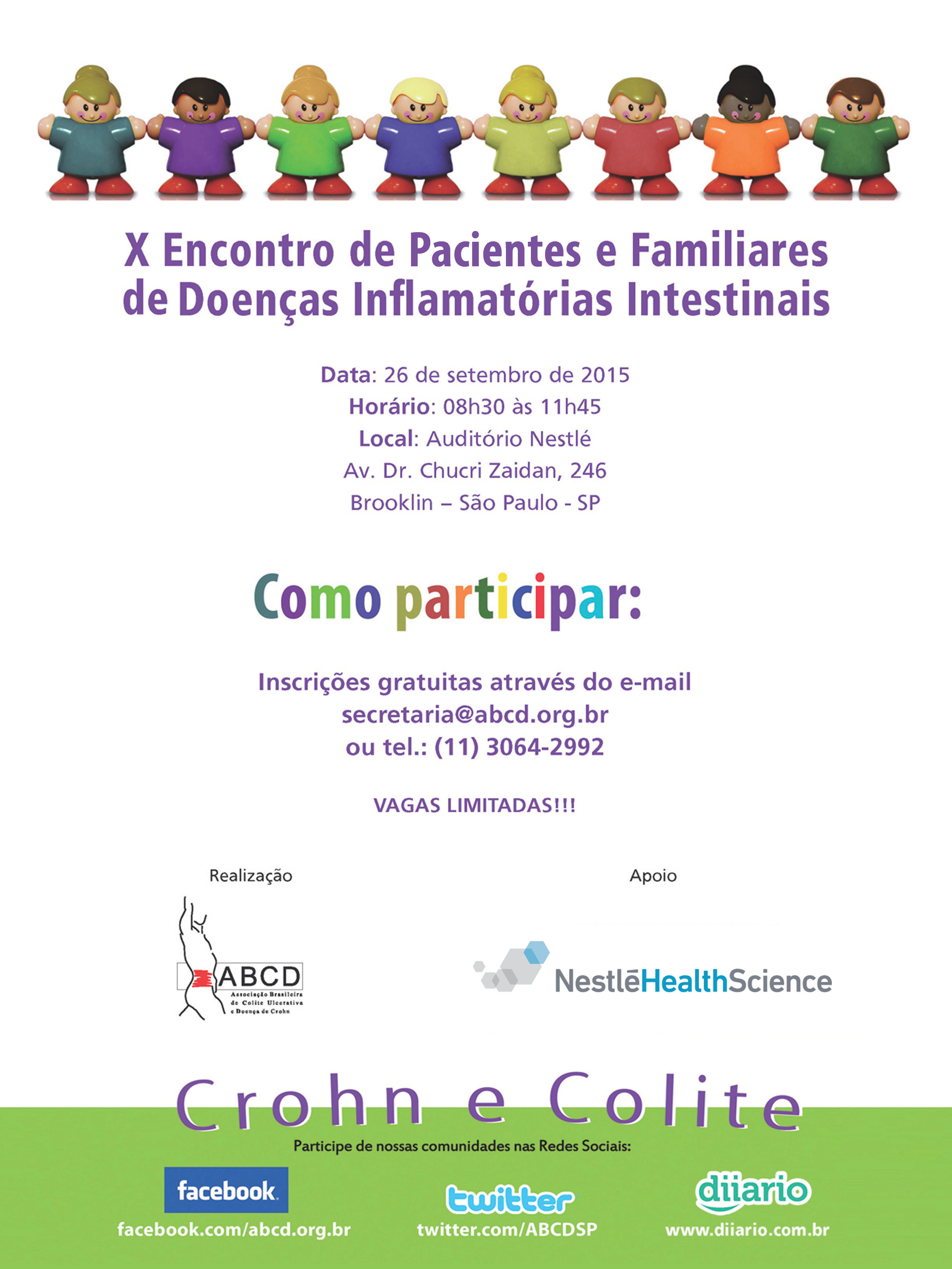 Não perca o próximo Encontro de Pacientes e Familiares de DII que acontecerá no dia 26 de setembro de 2015.